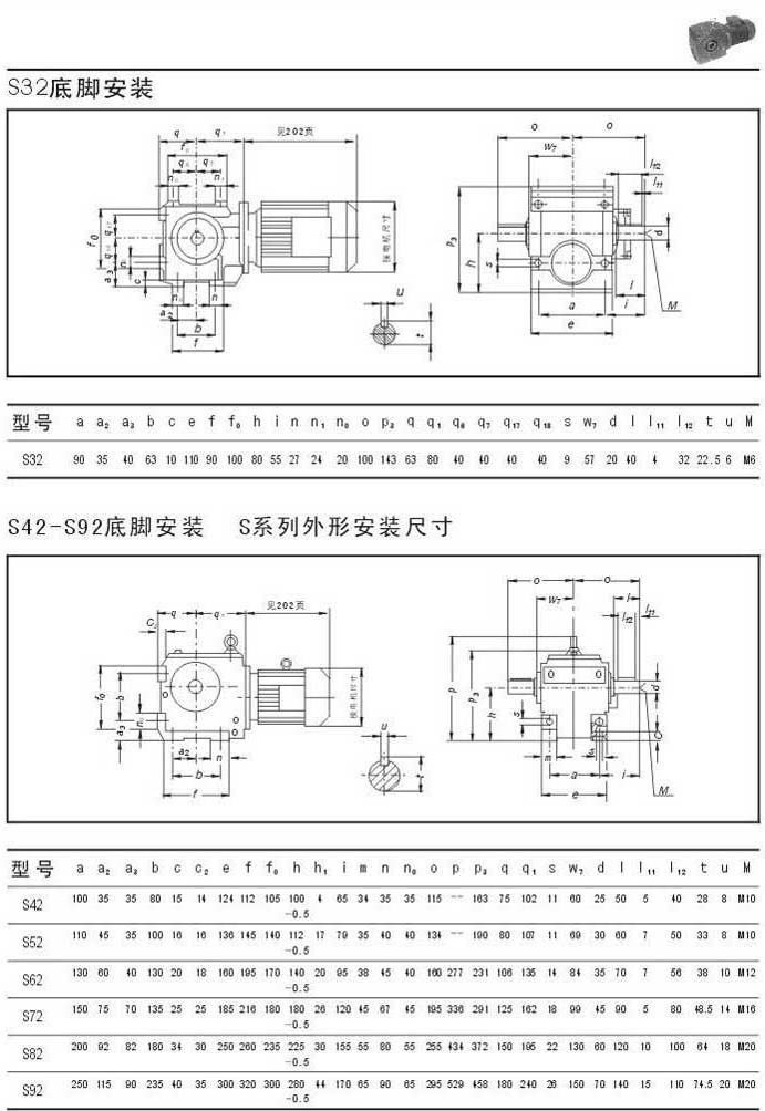 S32底腳安裝尺寸S42-S92底腳安裝尺寸 , S系列外型安裝尺寸
